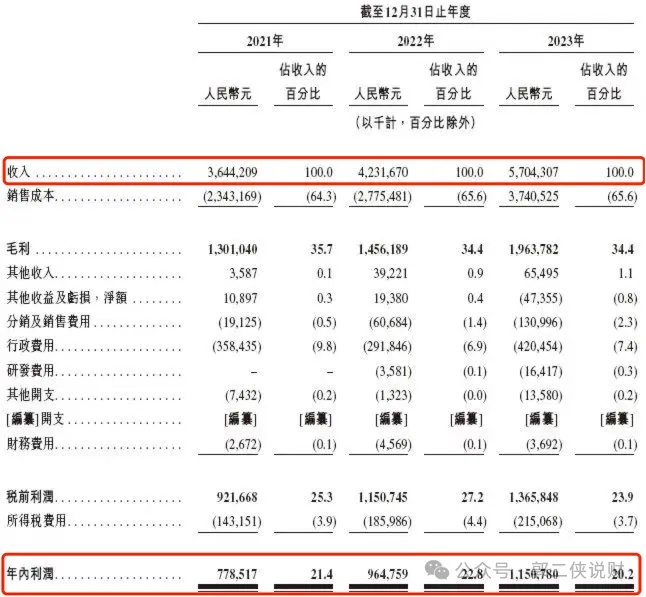 Financial data shows that from 2021 to 2023, Chabaidao's operating revenues were RMB 3.644 billion, RMB 4.232 billion, and RMB 5.704 billion, respectively, with net profits of RMB 779 million, RMB 965 million, and RMB 1.151 billion during the same periods.