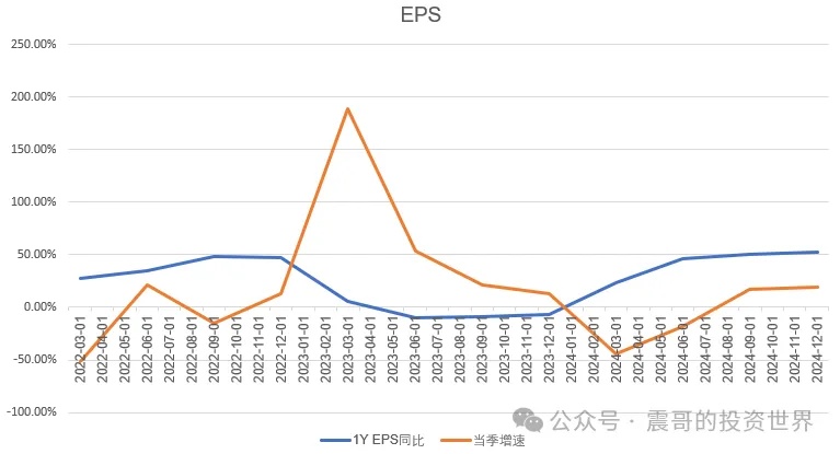 <2>1Y EPS growth: 1Y EPS growth is still accelerating upward.