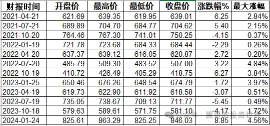 <2>Earnings day performance: Over the last 12 earnings releases, the stock rose 7 times and fell 5 times, but there were opportunities for gains on each earnings day.