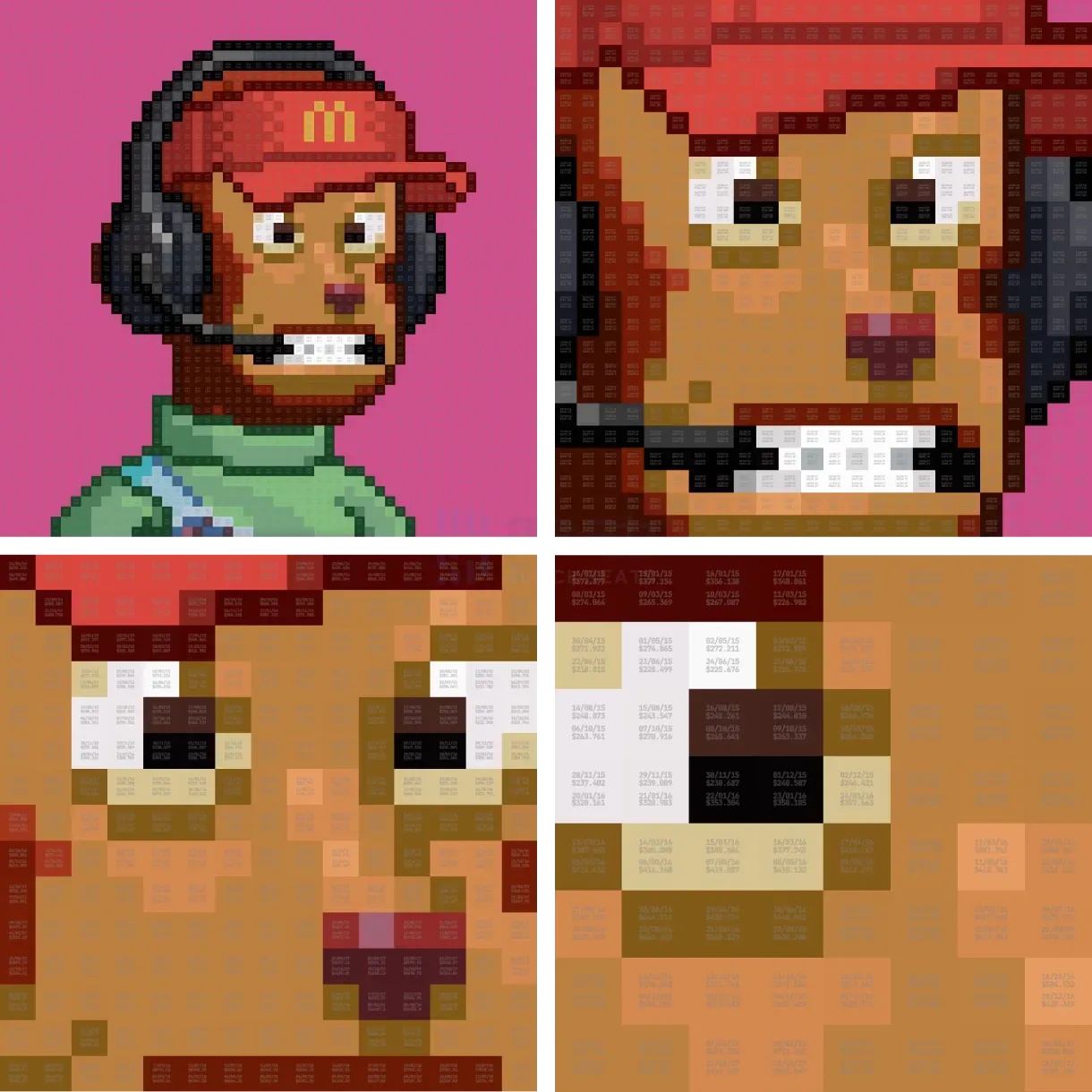 Everyday Satoshis is a pixel art series commemorating the halving, with a total supply of 5,586. From Bitcoin’s genesis block to the upcoming fourth halving—15 years, 5,586 days. Each pixel block displays a date and Bitcoin’s daily high price in USD.