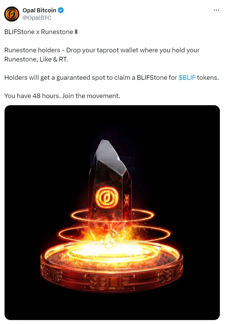 A perk for Runestone holders from Opal Protocol. If you hold Runestone, don’t forget to like and retweet this tweet and leave your bc1p address.