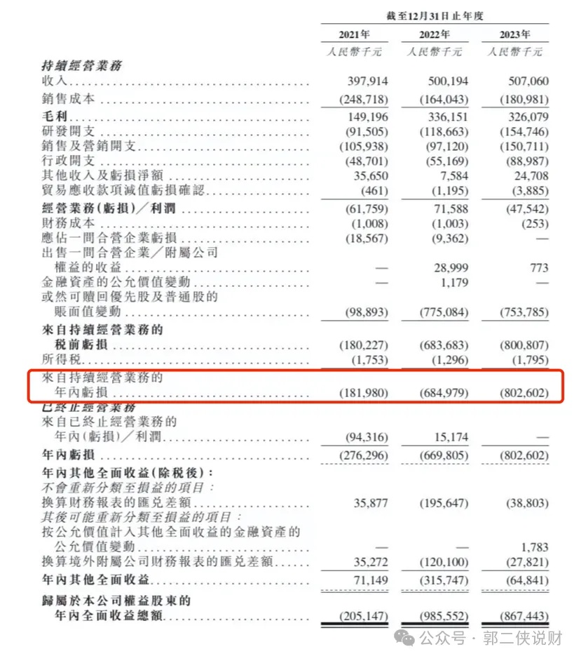 财务数据显示,在过去的 2021 年~2023 财年,出门问问的营业收入分别为人民币 3.98 亿、5.00 亿和 5.07 亿元,相应的净利润分别为人民币-1.82 亿、-6.85 亿和-8.03 亿元。