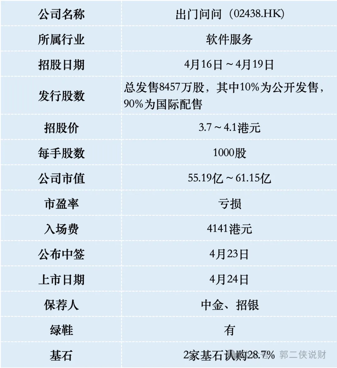 出门问问此次发行股份占全部股份比例的 5.67%,按照发行价中位数 3.9 港元算,募资约 2.75 亿,2 家基石锁定 9500 万,流通盘 1.8 亿。保荐人是中金,这个发行市值安排,上市后股价稍微抬一点,62 亿就能进港股通,给二级市场留的水位不多。