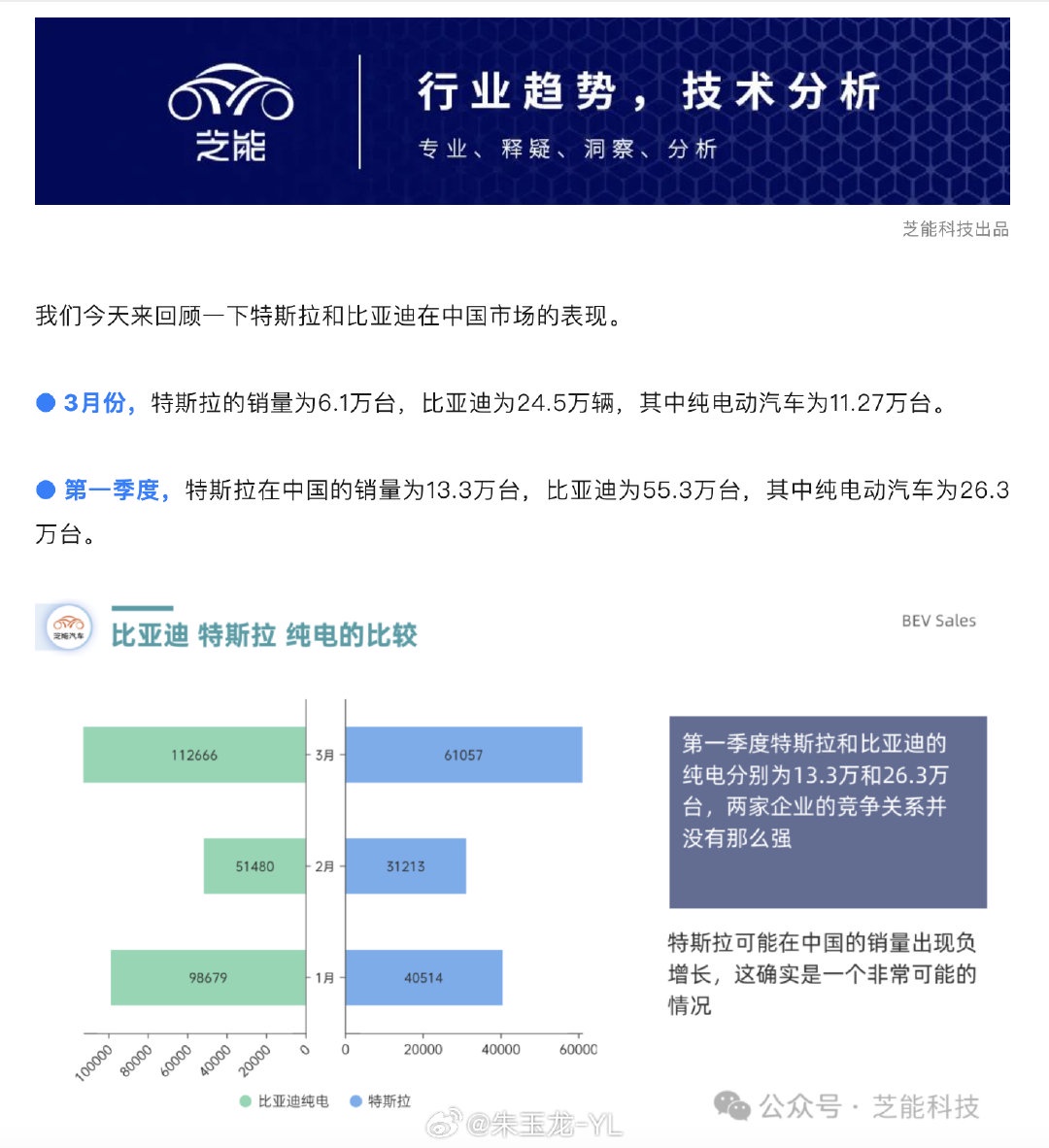 A comparison of Tesla and BYD's performance in the domestic Chinese market in Q1