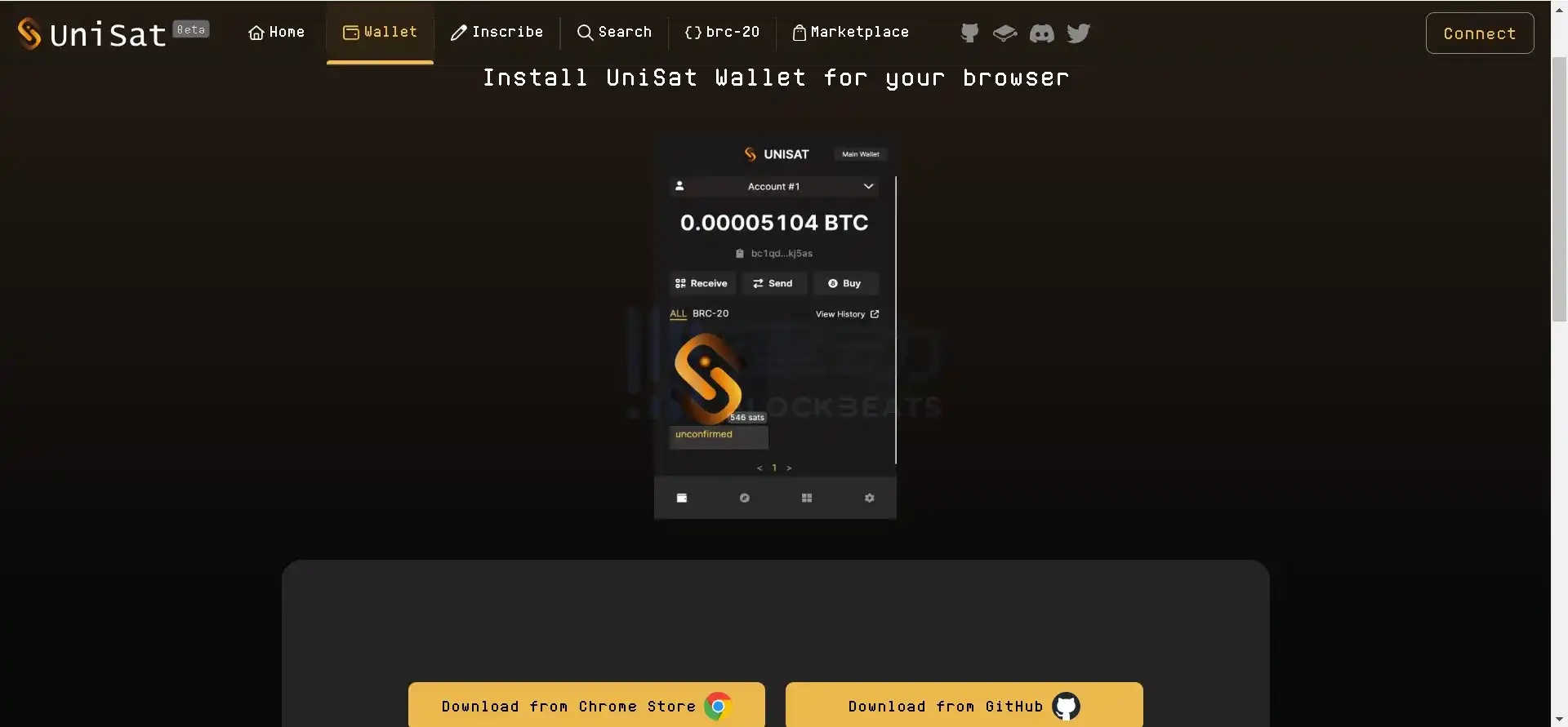 1. Open the Unisat official website, choose the Chrome browser to download and install the extension.
