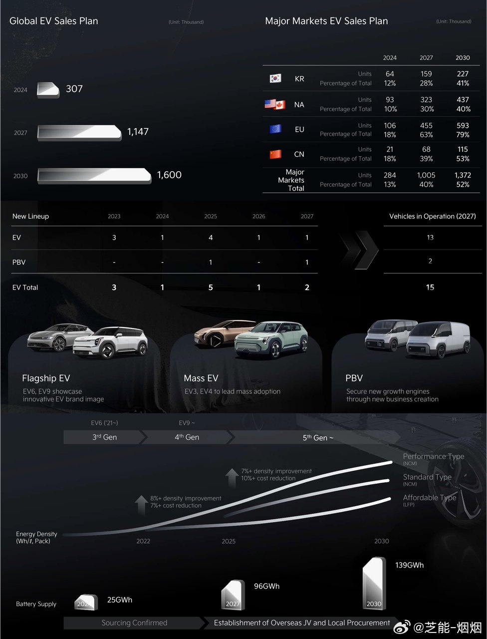 Kia will increase the proportion of EVs in total sales, with EV sales expected to reach 1.6 million units by 2030. The company plans to launch six EV models, focusing on promoting EVs in the U.S., Europe, South Korea, and emerging markets. Kia has set a target of selling 250,000 PBVs (Purpose Built Vehicles) by 2030.The copyright of this article belongs to the original author/organization.