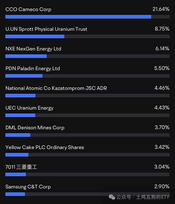 ②Sprott Physical Uranium Trust (U.UN), the second-largest holding(8.75%), is an investment trust focused on holding physical uranium (U3O8). It provides investors with a way to directly invest in uranium as a commodity rather than through uranium mining stocks;