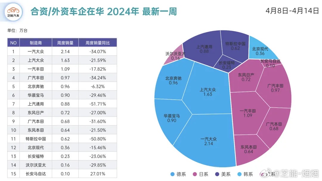 - Last week, sales of foreign brands generally dropped by more than 20% year-on-year. Since the first quarter, the overall performance of foreign automakers has not been optimistic.