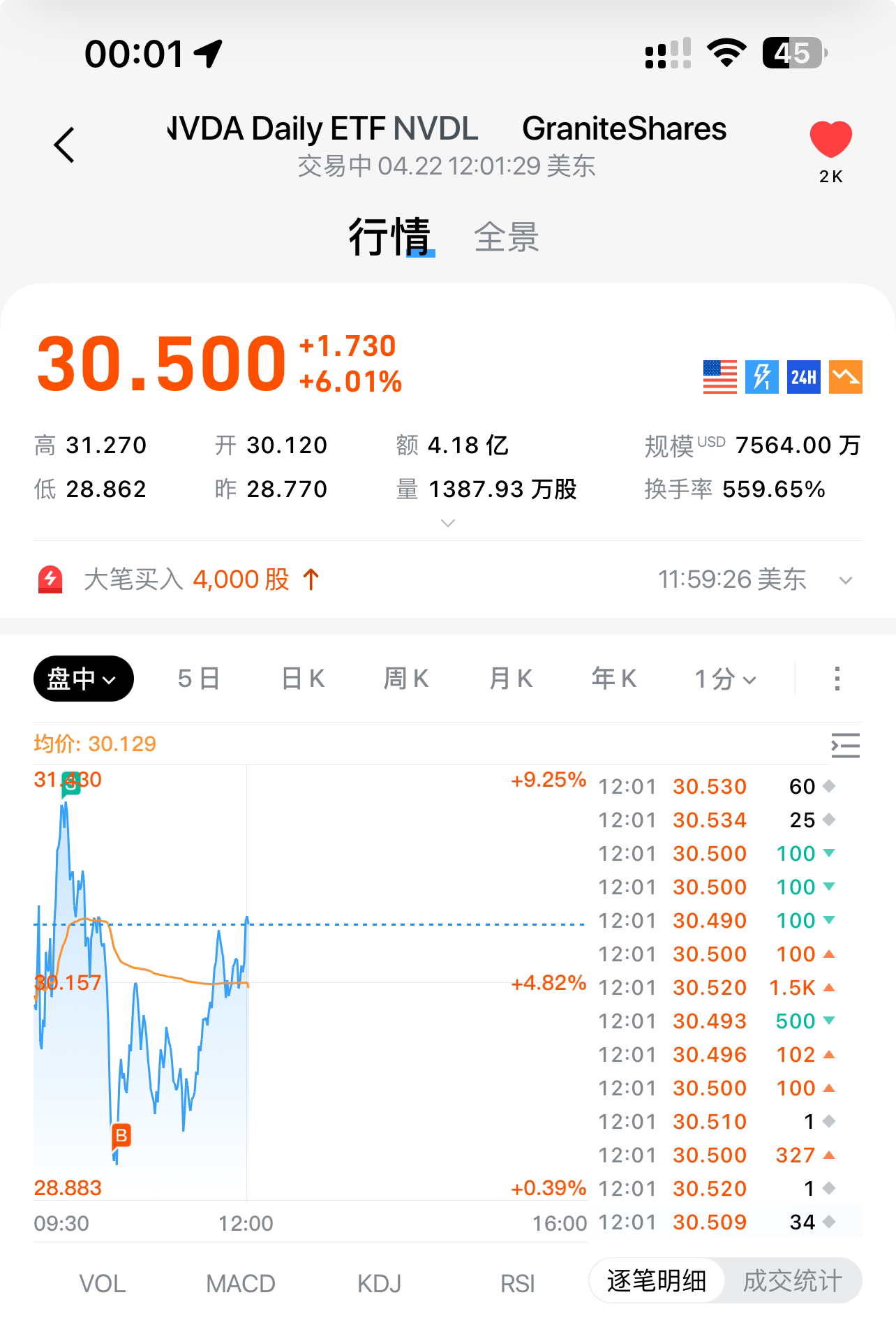 Rate Of Return$GraniteShares 2x Long NVDA Daily ETF(NVDL.US)Today was a great day for day trading! Washed out a big chunk of the position cost, feels good.