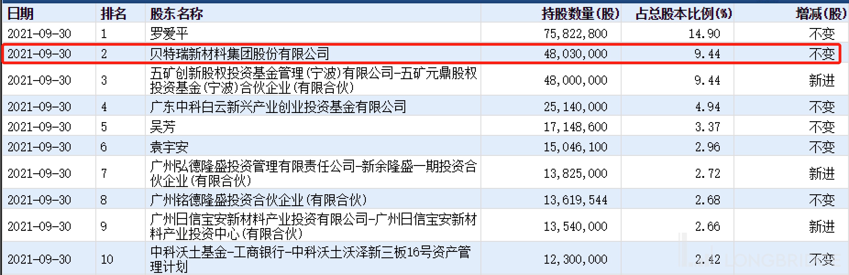 图 芳源股份股东构成(贝特瑞占比 9.44%)
