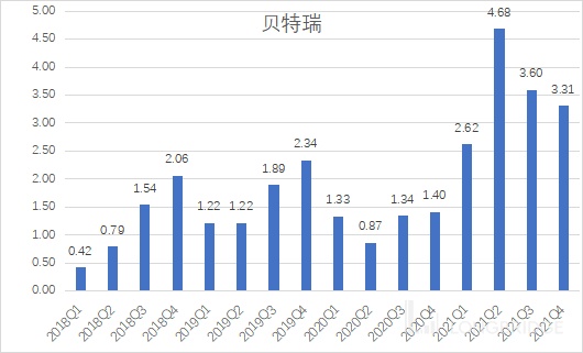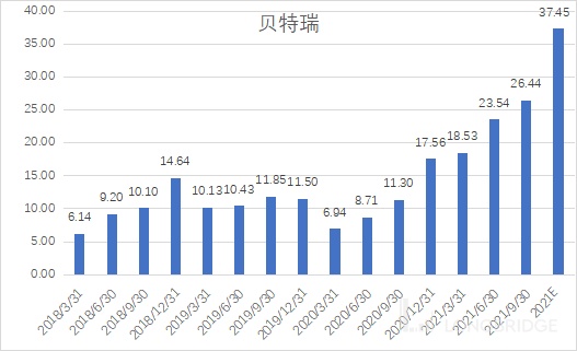 从季度分布来看,贝特瑞基本上从一季度到四季度收入依次增强,一季度是全年最淡季,四季度是全年最旺季。