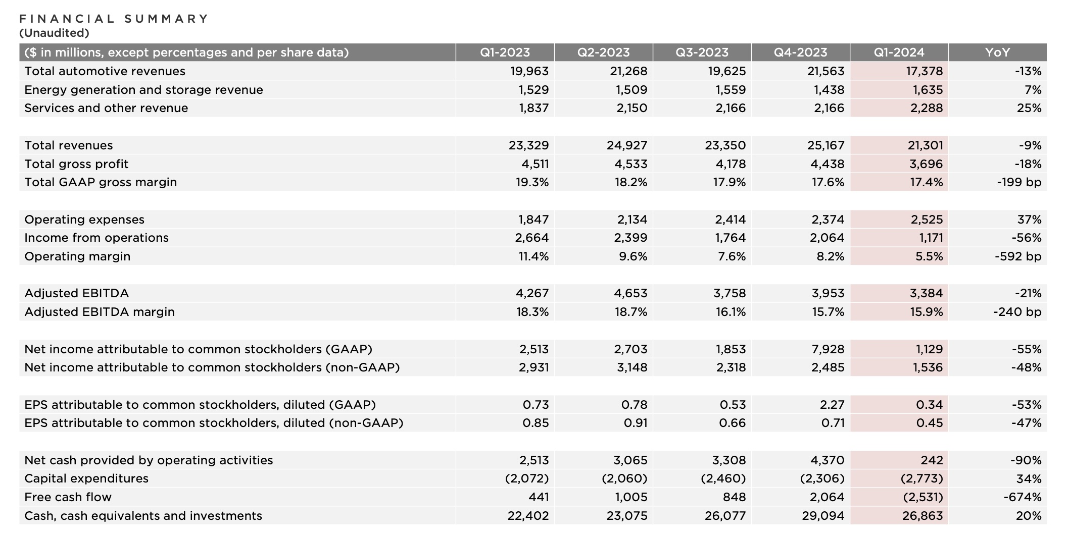 After the market closed on April 23, 2024, Tesla, which has been questioned by the market, released its first-quarter 2024 earnings report.