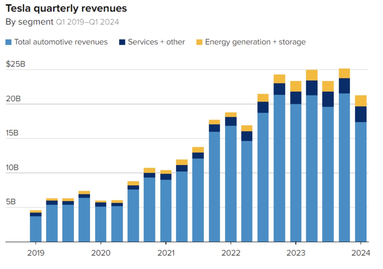 Buffett ApprenticeTesla's Q1 2024: Performance declined significantly, but it didn't hinder the after-hours surge.