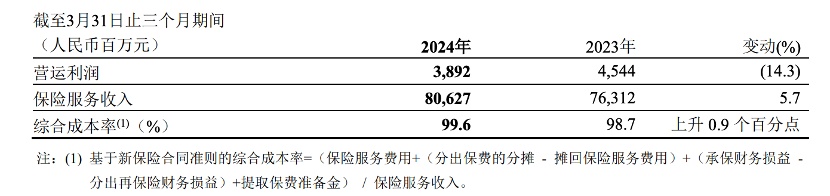 Ping An Property & Casualty Insurance's insurance service income was RMB 80.627 billion, a year-on-year increase of 5.7%. The overall combined ratio of Ping An Property & Casualty Insurance, excluding credit guarantee insurance, was 98.4%.