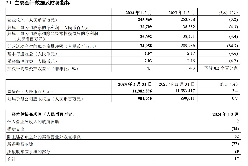 On the evening of April 23, 2024, Ping An Insurance (Group) Company of China, Ltd. released its first-quarter performance report for 2024.