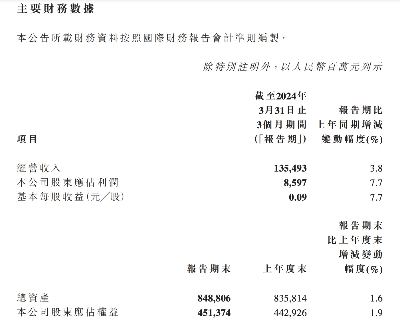 During the reporting period, the company achieved total operating revenue of 134.495 billion yuan, a year-on-year increase of 3.65%; net profit attributable to the parent company was 8.597 billion yuan, up 7.68% year-on-year; non-GAAP net profit was 9.160 billion yuan, an increase of 5.40% year-on-year.