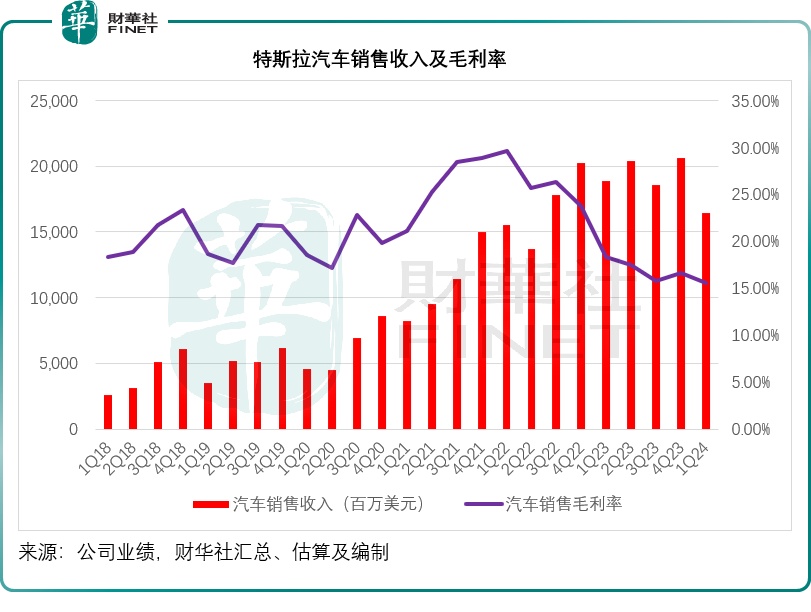 Caijing noticed that Tesla's automotive gross margin further declined to 15.57% in Q1 2024, down 2.74 percentage points year-over-year and 1.05 percentage points quarter-over-quarter (see chart below).