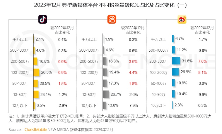 In 2023, mid-tier KOLs increased while tail KOLs decreased despite platform support.