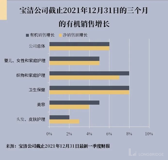 本季度净销售额增长 6%,达到 210 亿美元,单位销量增长 3%。更高的定价使净销售额增加了 3%。混合销售对净销售额的影响呈中性,因为北美地区和个人保健业务形成的增长的组合,两者的售价均高于公司平均销售价格,但被织物护理的增长所抵消,后者已低于公司平均售价。外汇对净销售额没有净影响。