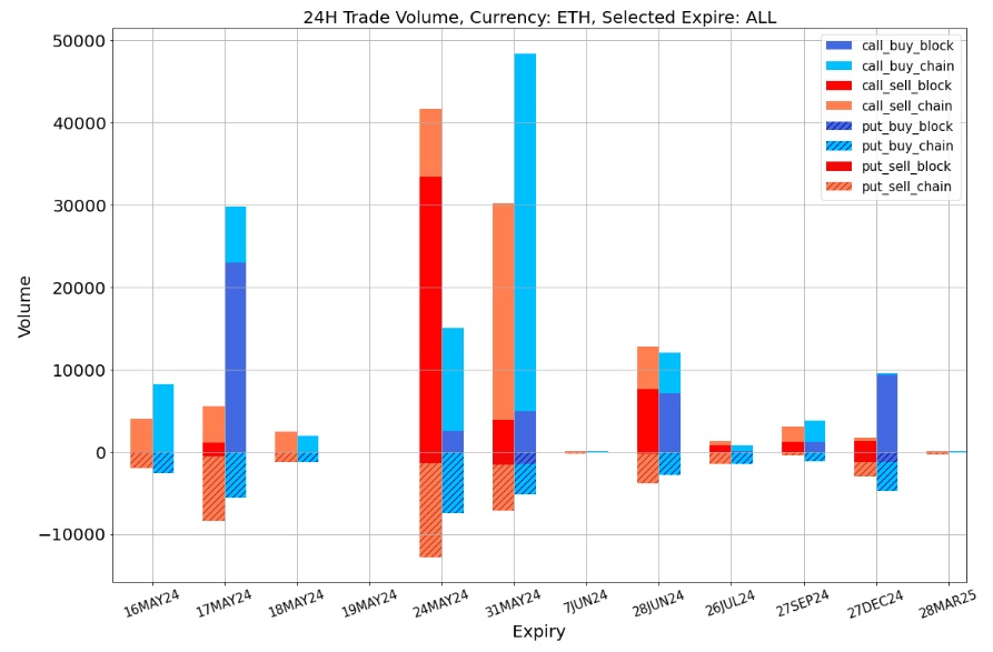 In options, BTC and ETH implied volatility (IV) levels showed starkly different trends. BTC's main changes were seen in mid-to-long-term IV rising, with block trades over the past day mostly concentrated in mid-to-long-term contracts. The largest trade was a 277.5 BTC per leg Long Straddle betting on June-end volatility, along with a diagonal spread selling May and buying June Calls. ETH front-end IV dropped sharply, attracting a block trade of 19,450 ETH per leg for Buy 17 MAY vs Sell 24 MAY. Meanwhile, there was significant call option positioning on the May-end ETH chain. Despite ETH's recent underperformance, some traders are still betting on its upside potential.