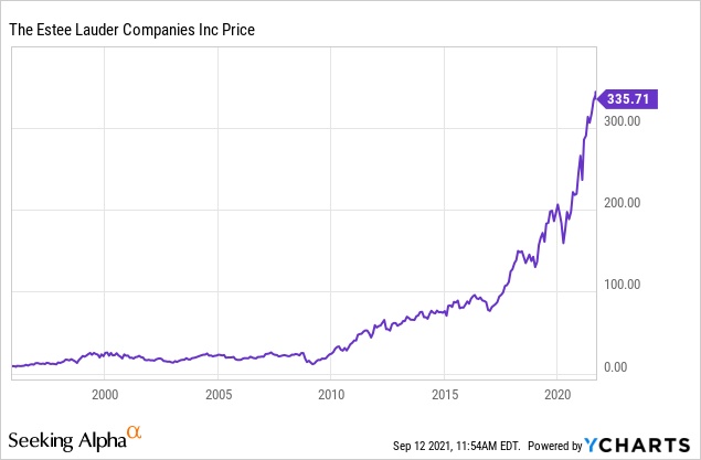 雅诗兰黛管理良好,生产高质量的美容产品,但我们不能忽视其股价的上涨。仅仅看多年价格图表很明显股价的增长超出了业务增长的速度。