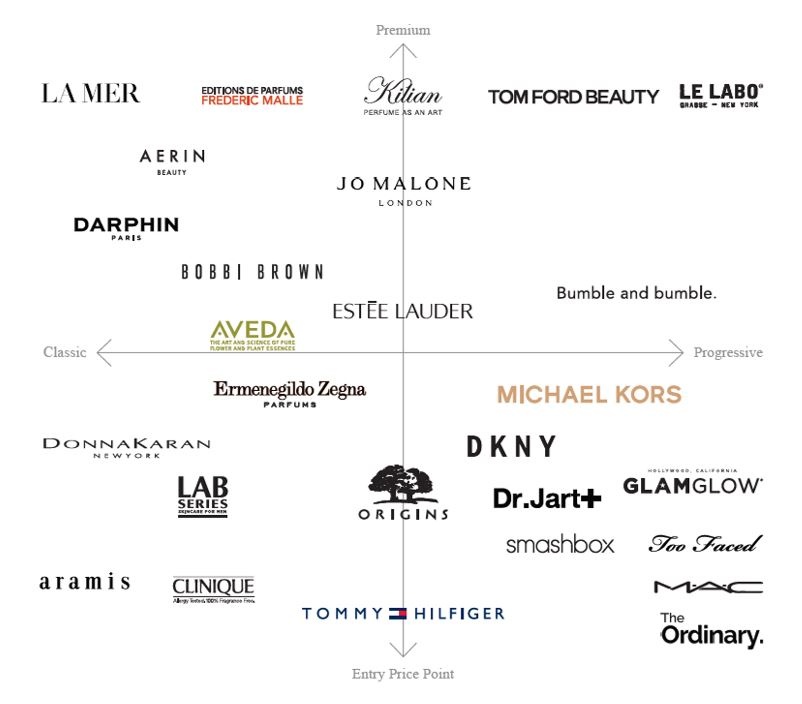 雅诗兰黛的战略一直是通过寻求满足广泛偏好和品味的独特品牌来营销和推广雅诗兰黛的产品。每个品牌都有一个单一的全球形象,通过一致的标志、包装和广告进行宣传,旨在提升其形象并使其与市场上的其他品牌区分开来。品牌包括:雅诗兰黛、倩碧、悦木之源、魅可、芭比波朗、海蓝之谜、艾凡达、祖玛珑、蒂佳婷等。