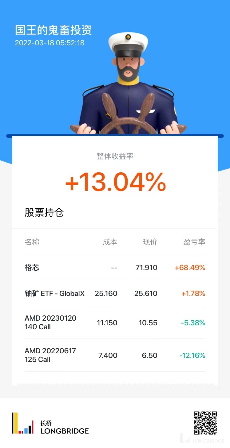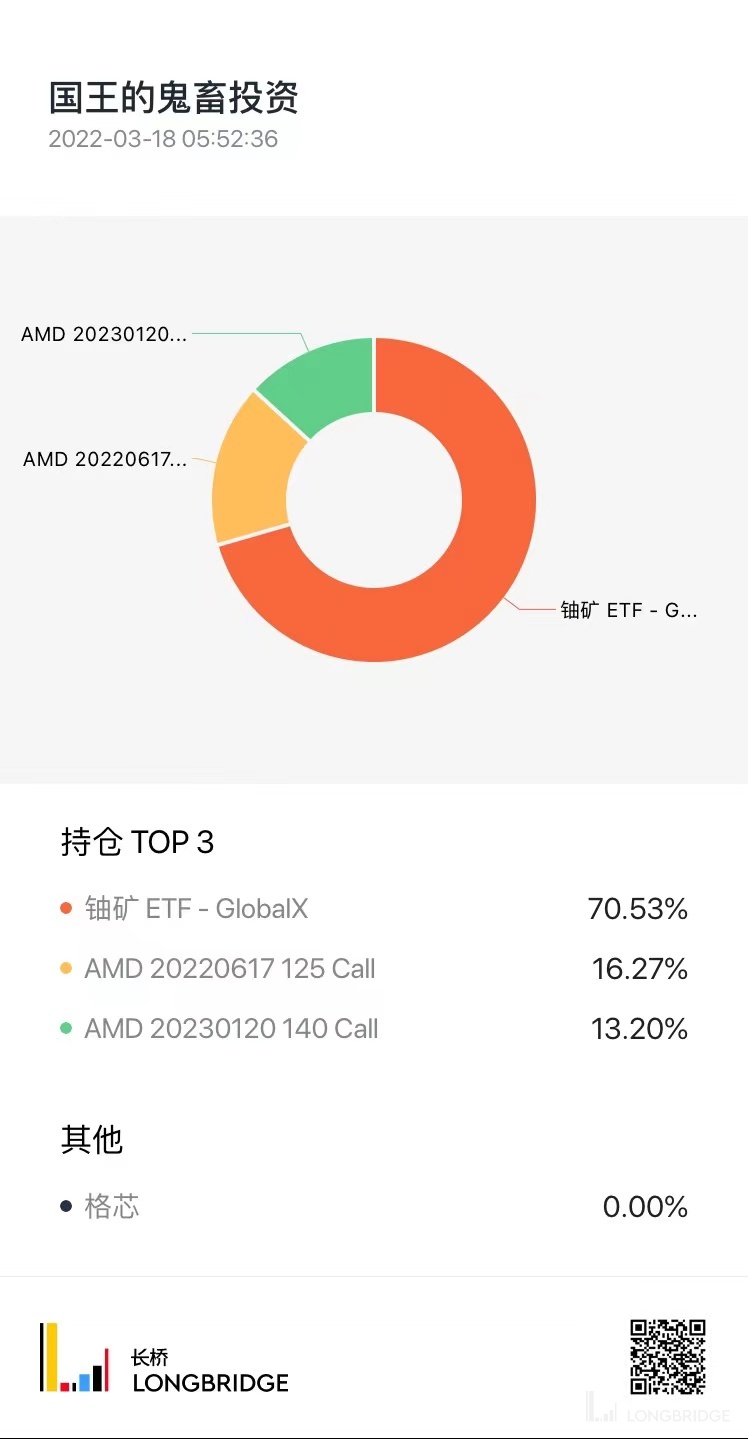 美股持仓:昨夜盘中清仓了$GlobalFoundries(GFS.US) ,买点不错,连续三天大涨平均获利超过 20%,已经很满足。目前仍持有$Global X Uranium(URA.US) ,上周高追成本较高,所以浮盈不多。现货铀价屡创新高,希望能带动股价再升一波,不过自 2020 年底铀股股价启动以来,累计升幅普遍超过 200%,再升有可能就是鱼尾行情,所以期望值并不是很高。