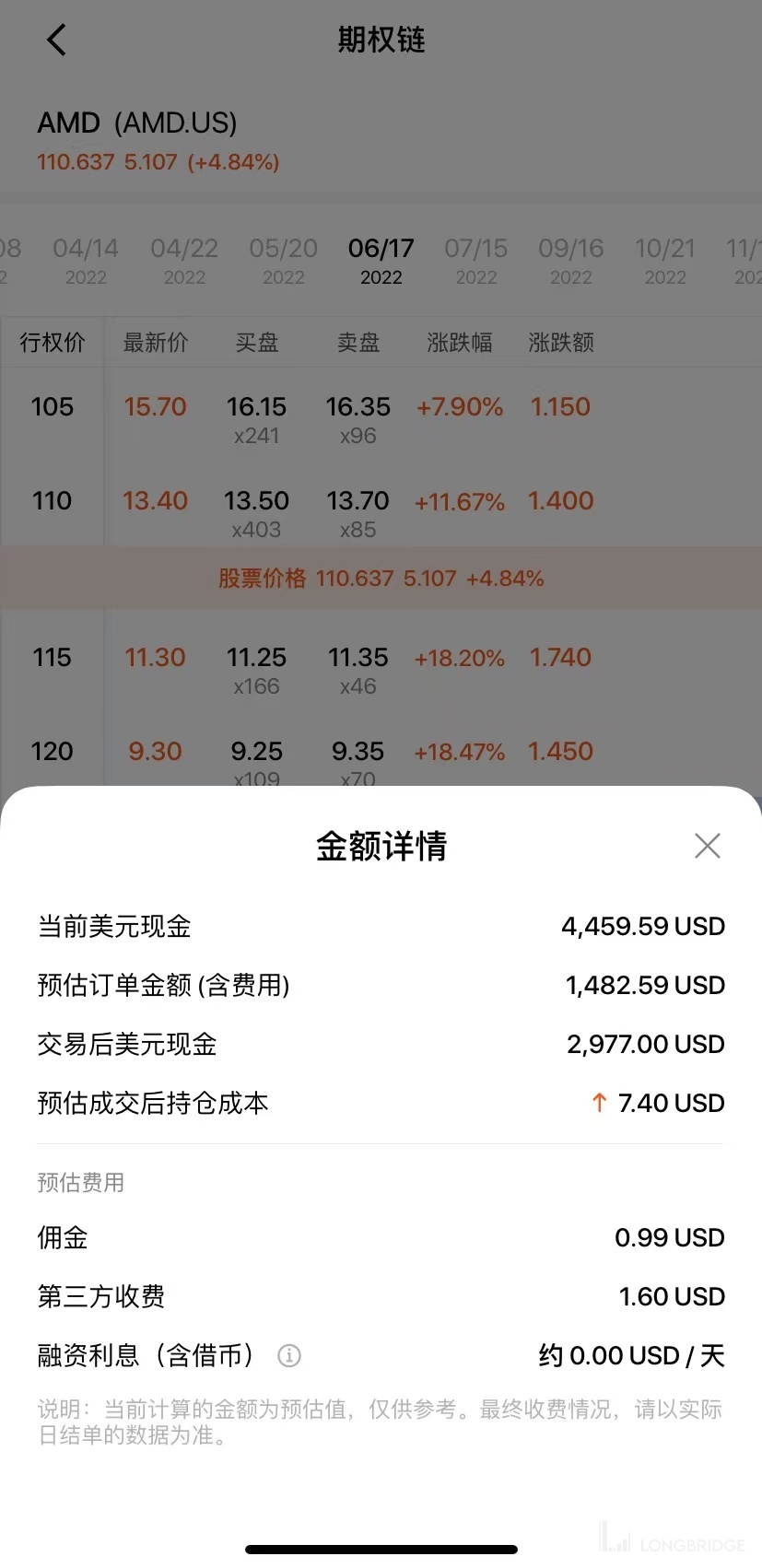 另外还持有少量$AMD(AMD.US) 的 long call,这个原本是作为对冲正股的空头头寸买入的,这次正好作为期权功能体验分享的一个素材。