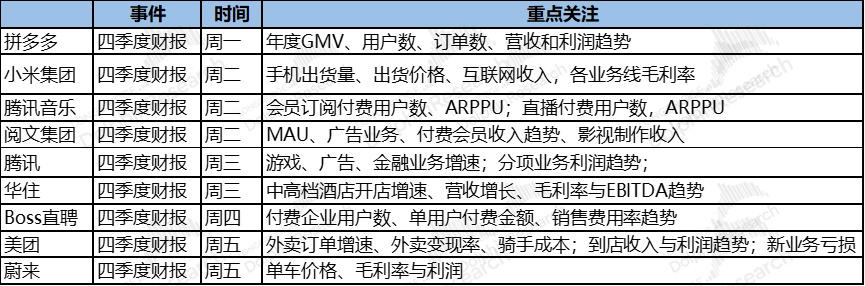 5. 中概们业绩塌方: 眼下马上要到来的短期来看,下周马上要发财报的公司至少 9 个,而这些公司从目前的情况来看,除了小米、华住和蔚来,剩下基本都是监管被锤的公司,而这三家没有被锤的公司,短期也都各有各的问题,发喜报的几率都比较低。不过,在当前价位下,短期业绩再烂已经不是核心,业绩能够稍微超预期一些,最多只是辅助性的锦上添花,更重要的问题是寻找商业模式已经自证、现金流稳定、生意可持续性,现金储备有充足的公司。
