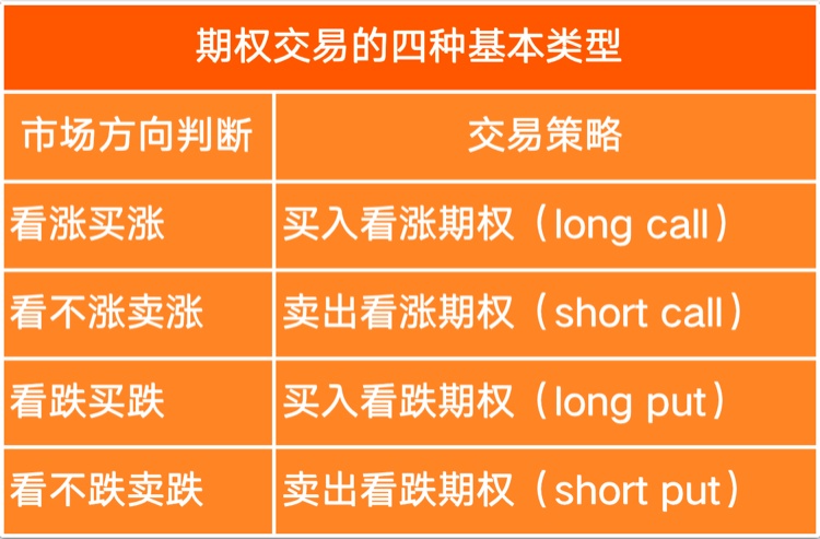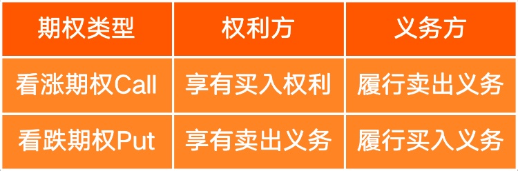 期权买卖类型:看涨期权(call)、看跌期权(put)