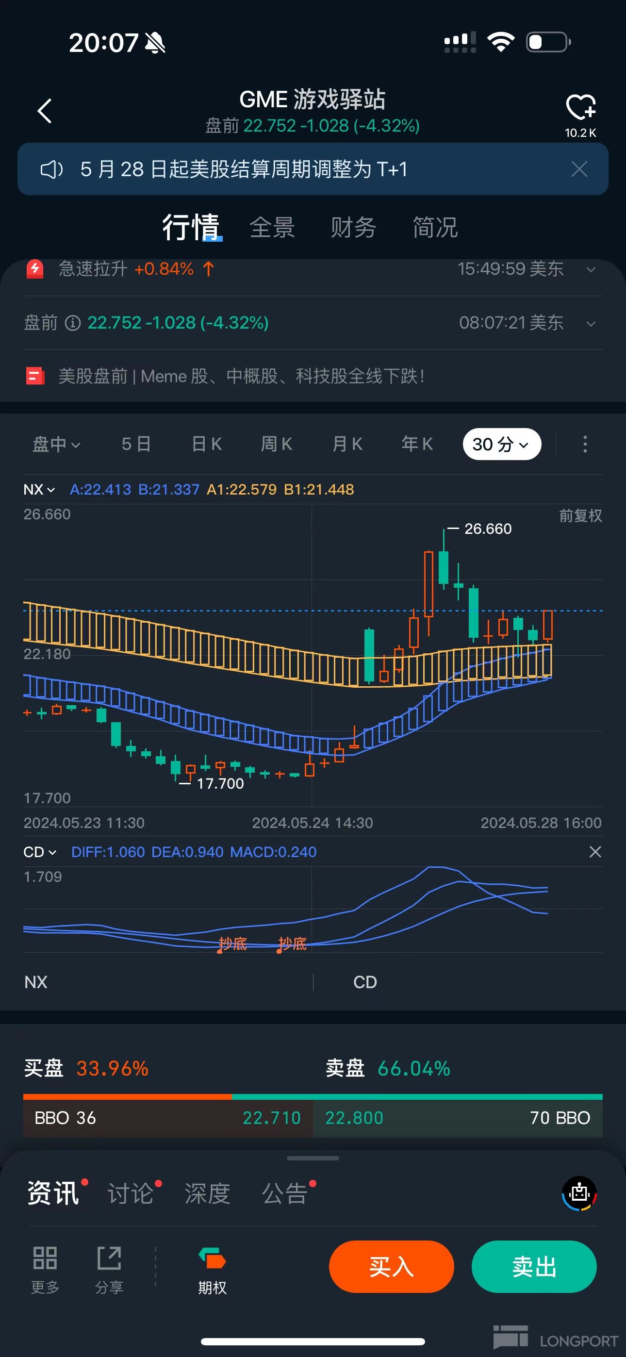 Last Friday night, we took a position in GME: the CD indicator signaled a buy at around 18.