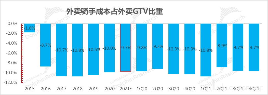 就四季度来看,这个季度由于用户激励(部分在收入减项)有意收缩,外卖变现率整体依然比较坚挺,达到了 13.85%,(去年 13.8%)。