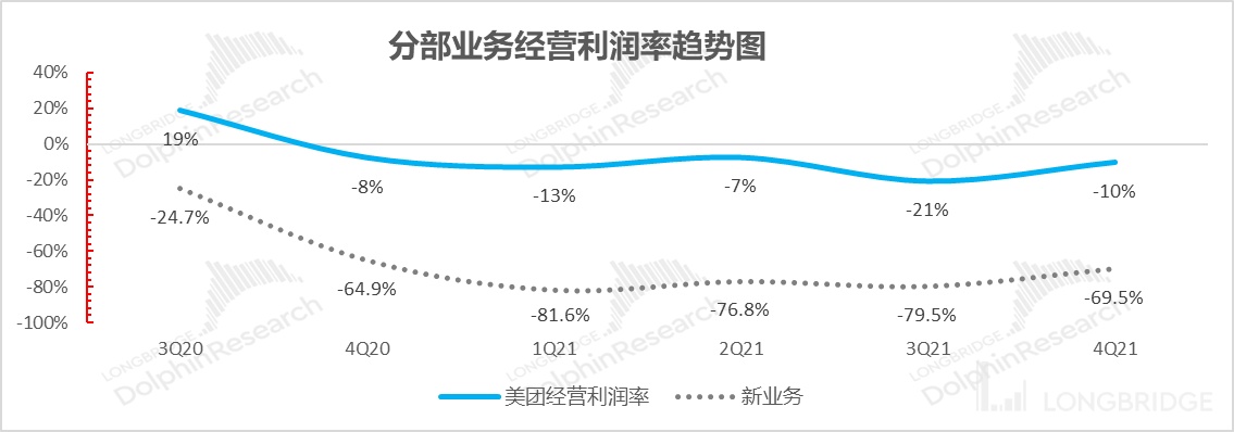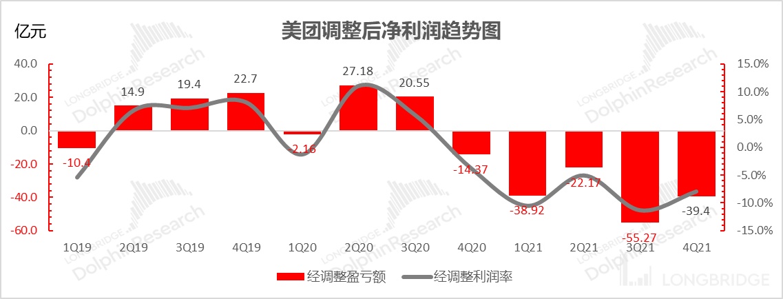 而如果要看有市场预期可以对比的经调整净利润:本季度美团净亏损实际 39 亿,远远低于市场预期的 58 亿,主要是各个业务分项的利润表现基本都在超预期的状态。