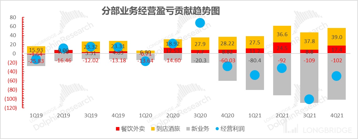 1、垄断的外卖业务:顶住了外卖用人合规成本的试点性推行,享有绝对市占优势的美团能够通过降低用户补贴来对冲佣金变现率的下行,外卖在各种天灾和人为的压力当中,经营利润超出了市场预期 2 个亿。