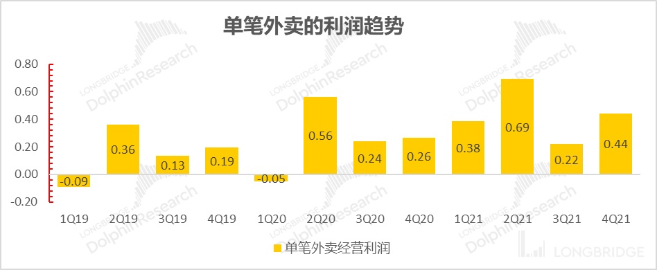 四季度由于天气相对好一些,美团的补贴又非常克制,单均外卖利润又回来了。美团四季度外卖利润 17 亿人民币,超出了市场预期的 15 亿,折合单均利润四毛四,市场预期是三毛九。