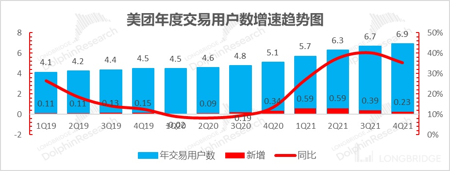 不过,新业务亏损收窄之后,美团拉新的速度也明显放缓: