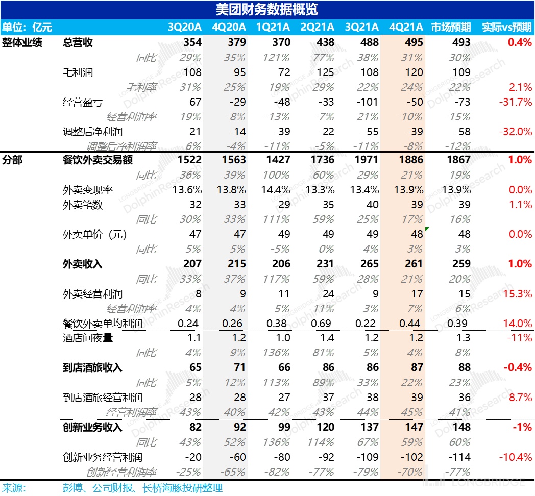 $美团-W.HK 3 月 25 日港股盘后发布 2021 年四季度财报,先看大数: