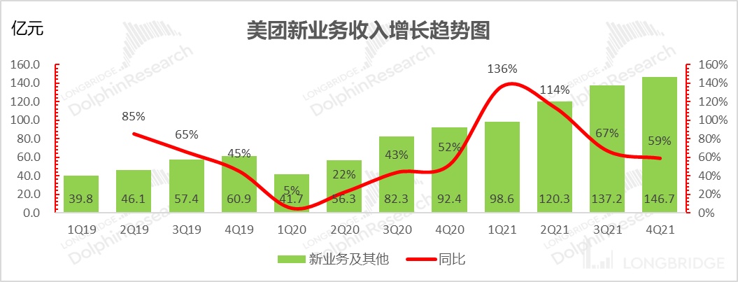 社区团购美团优选业务所在的新业务整体收入 147 亿,同比增速高达 59%,也与市场预期完全一致。