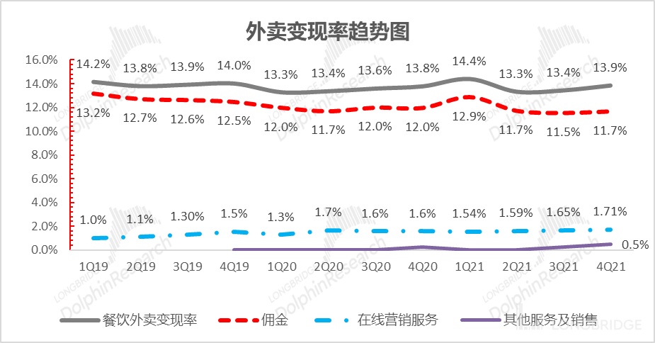 2. 风口浪尖的外卖变现率:披露更加清晰,但四季度表现依然坚挺