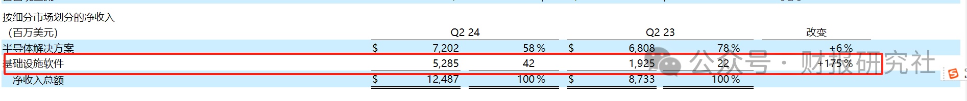 This quarter, Broadcom's semiconductor solutions revenue was $7.202 billion, up 6% year-over-year, in line with Bloomberg consensus estimates. Infrastructure software revenue was $5.285 billion, up 175% year-over-year, significantly exceeding market expectations.