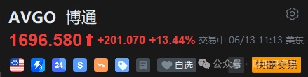 As of writing, Broadcom's stock has surged over 13% intraday. Including today's gains, Broadcom's year-to-date increase has exceeded 50%.