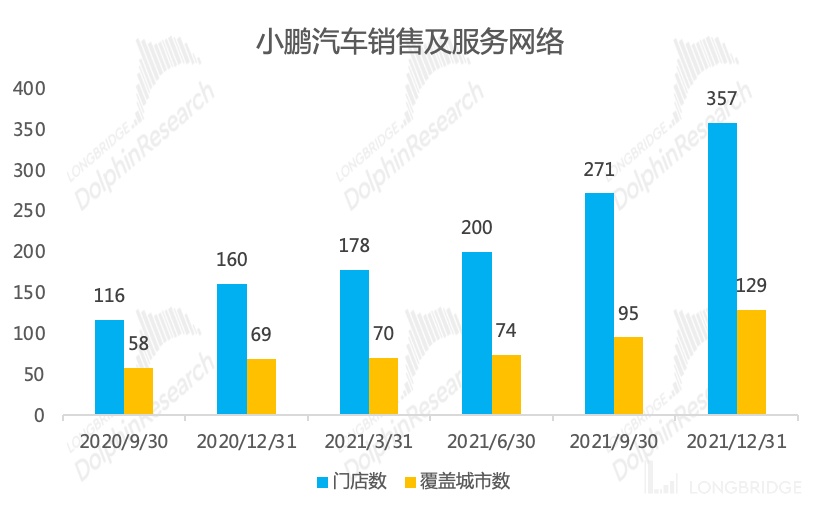 销售网络扩张明显加速,料加盟模式发力:2021 年第四季度销售和行政费用约 20 亿元,环比三季度约增 31%,环比增速超研发费用,与公司四季度加快销售服务网络扩张有关,销售网络扩张保障的是公司交付量。