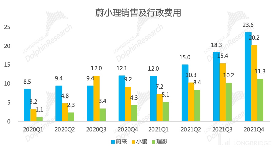 4、研发、销售渠道的持续加码是刚需。考虑当前的行业阶段,饱和的研发投入和快速的销售网络扩张是比追求利润更重要的事情。饱和的研发支出是制胜未来的关键,公司超额完成 2021 年研发支出预算,同时销售网络建设速度也是全面加速的一年,战略目标清晰,产品策略、研发策略、销售策略在落地过程中也没有变形,交付端会越来越好。