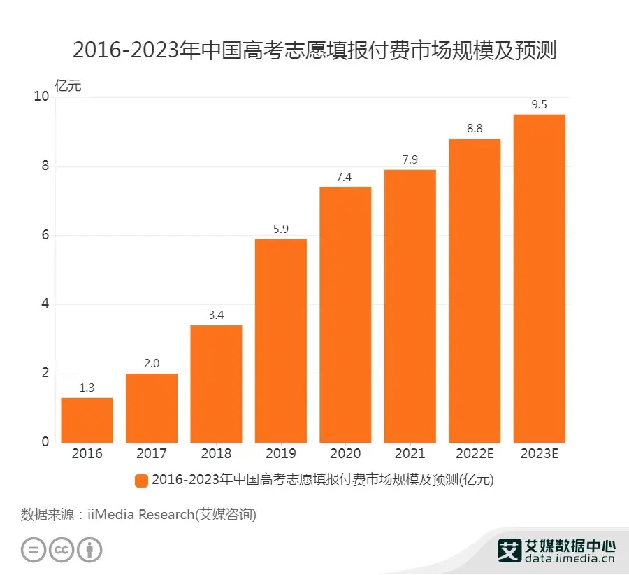 According to iiMedia Research, China's paid Gaokao 志愿填报 market grew from 130 million yuan in 2016 to 880 million yuan in 2022, a sevenfold increase. To maximize his IP's value, Zhang naturally expanded into this lucrative field.