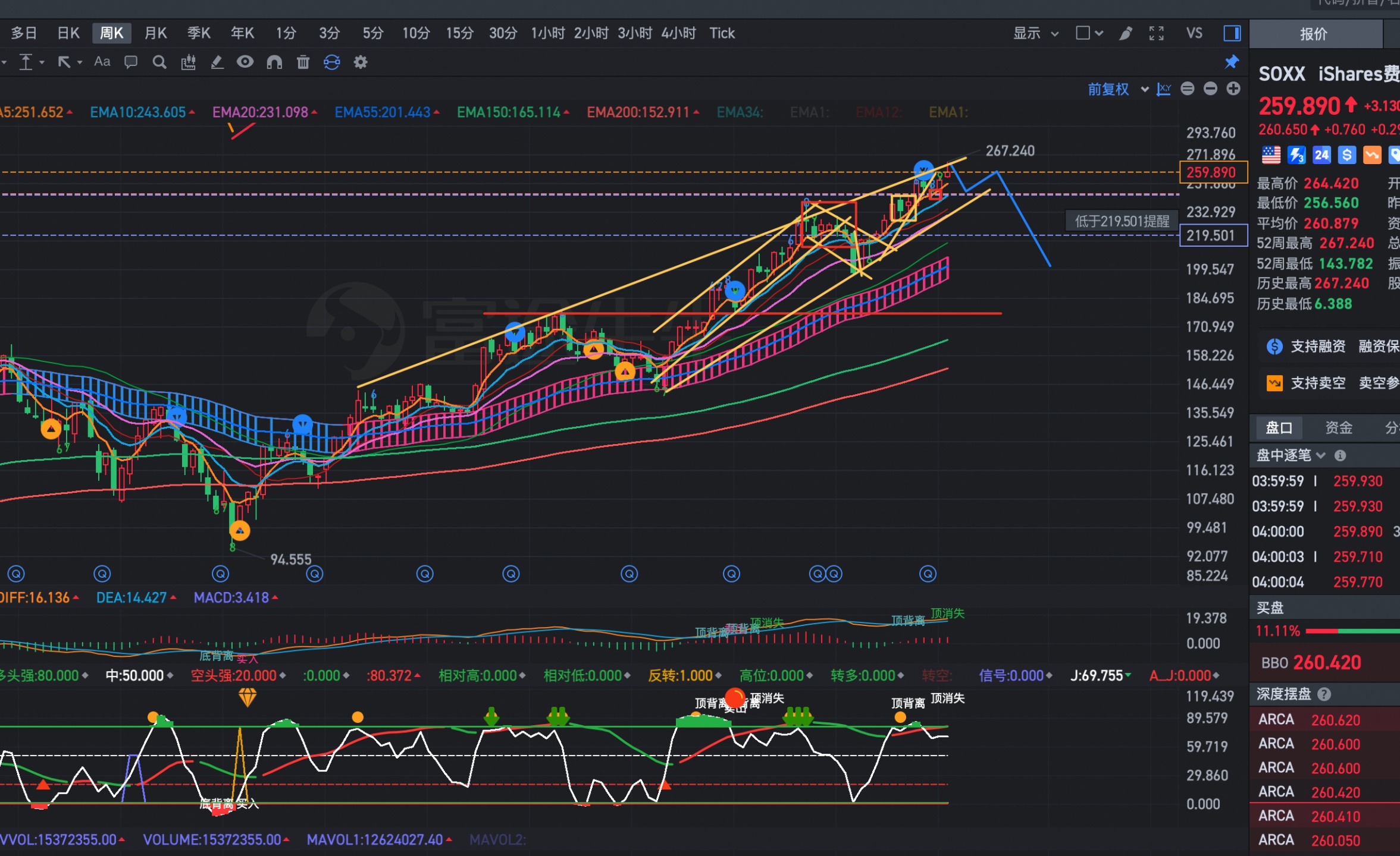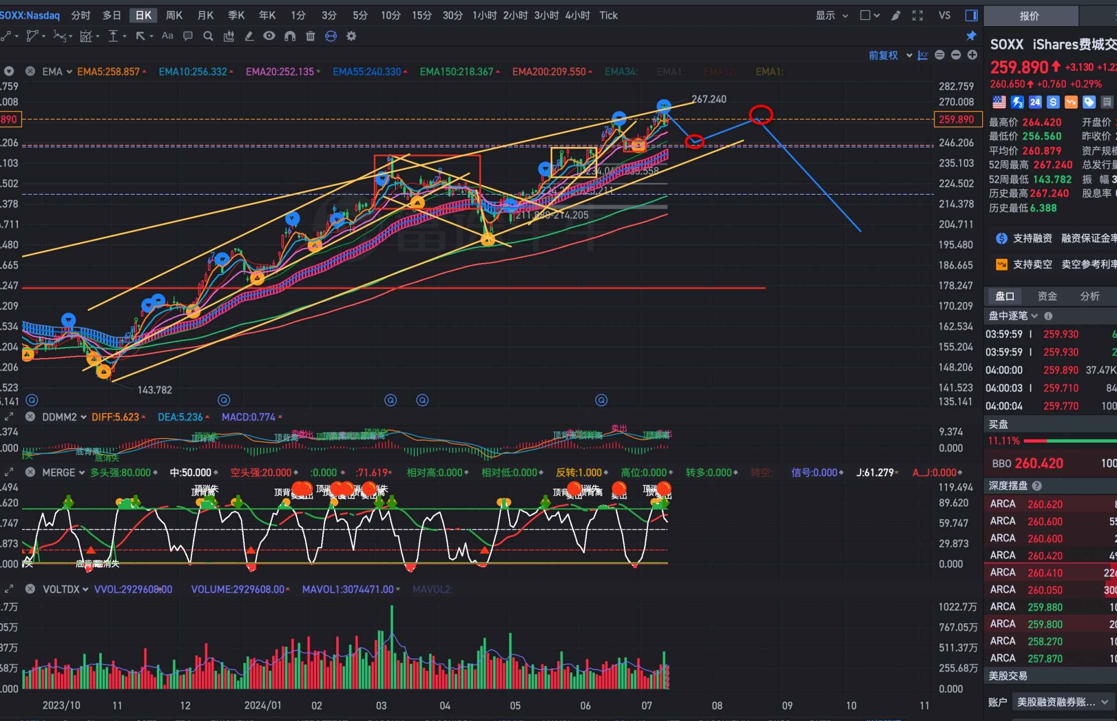 As expected, it hit the upper rail this week and then fell back. The short-term adjustment is not over yet. It is expected that 267.24 is the high point of the left shoulder. At the end of the month, it will fall back to around 245 and then slowly form the right shoulder in August until the NVDA earnings report forms the high point of the right shoulder. Medium-term, there will be a major buying opportunity in September or early October.