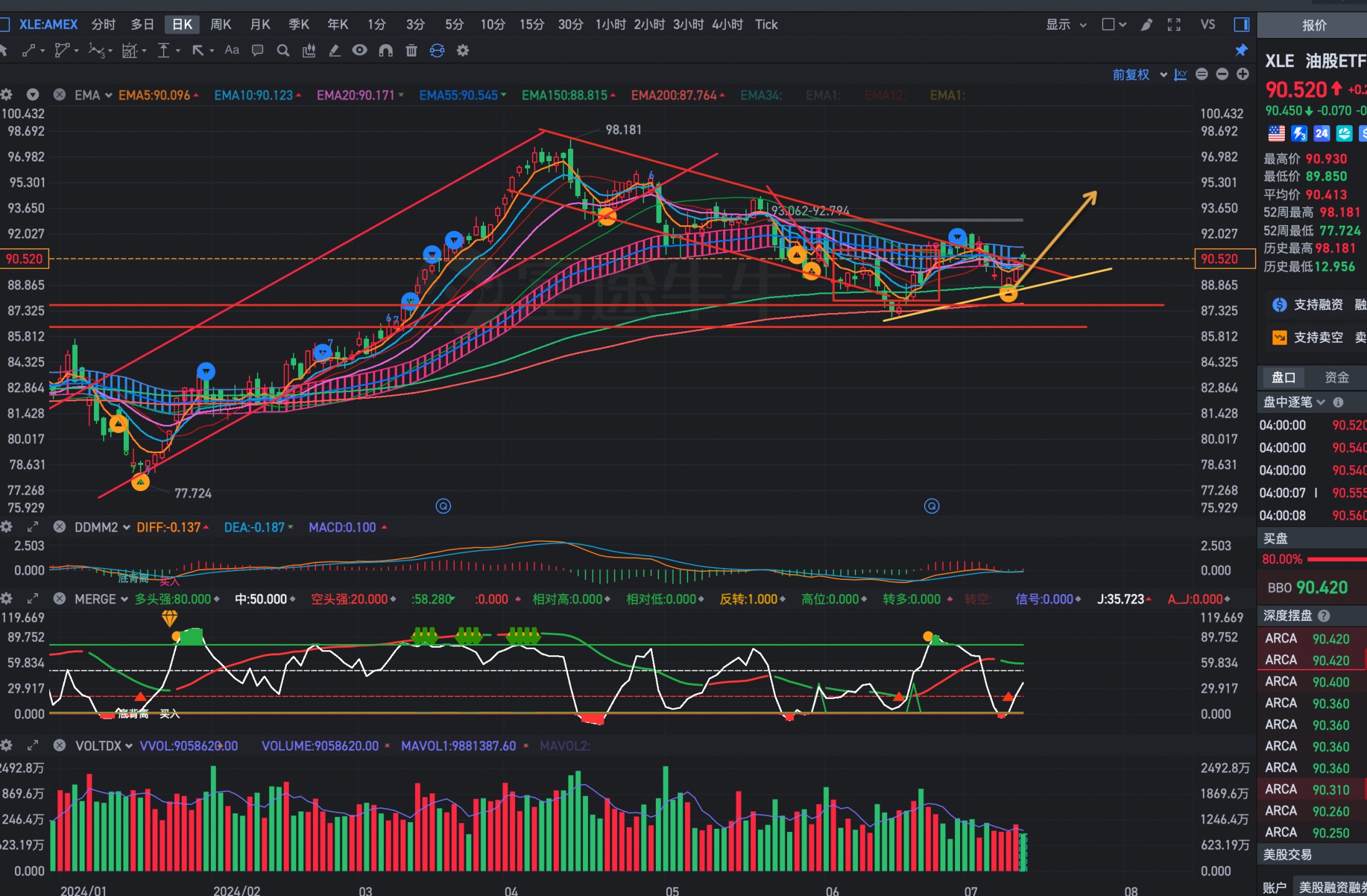 It broke through the consolidation wedge very strongly. The rally has just begun here, and we continue to be bullish. After breaking through 94, it could reach near 107.