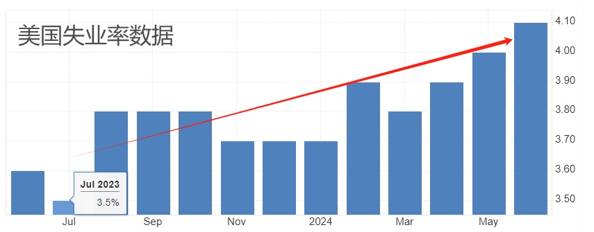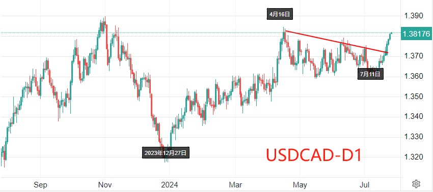 In July 2023, the U.S. unemployment rate hit a cyclical low of 3.5% before rising steadily to 4.1% in June this year, the highest since December 2021. While a sub-5% unemployment rate is considered healthy, the upward trend has raised market concerns. If next week's nonfarm payroll report shows another increase in unemployment, expectations for a Fed rate cut will intensify, potentially halting USDCAD's upward momentum.