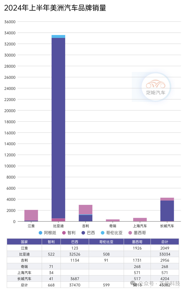 ● Great Wall Motors: Sold 41 units in Chile, 3,687 units in Brazil, and 517 units in Mexico, totaling 4,204 units.