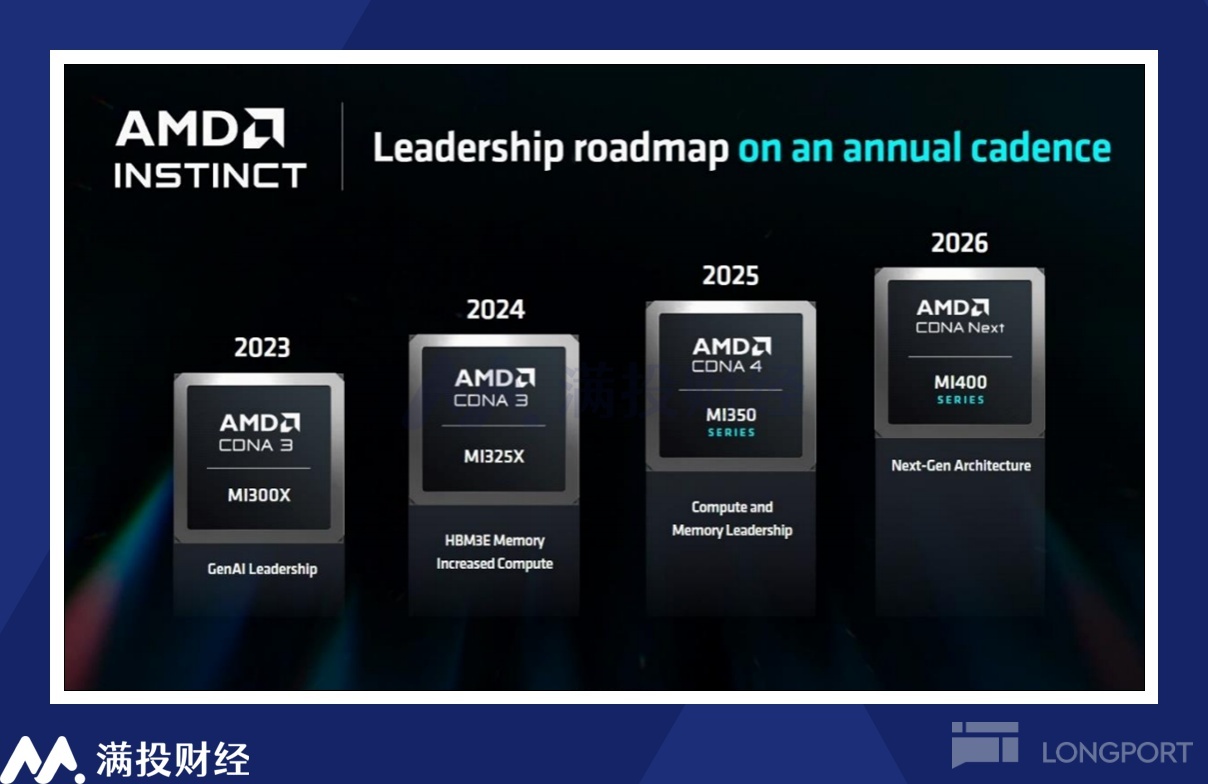 Without delving into GPU specs, AMD's MI300X rivals NVIDIA's H100 in memory, bandwidth, and training performance—key to beating revenue forecasts. AMD plans to follow NVIDIA's playbook, launching new MI325X in Q4 2024 and CDNA4-based MI350 in 2025, proving "technology is the top productivity driver."