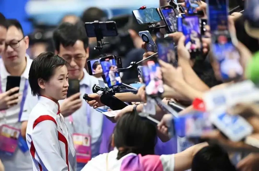 We also see sincere camaraderie among women—another facet of female strength. After executing her "ripple-less dive," Quan Hongchan ran tearfully into coach Chen Ruolin’s arms, who cupped her face and held her tight.